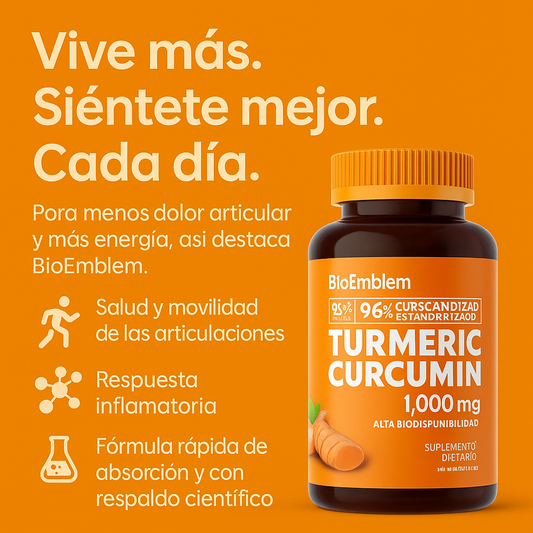 CÚRCUMA BIOEMBLEM® + PIMIENTA NEGRA + ACEITE MTC | SUPLEMENTO NATURAL PARA ARTICULACIONES FUERTES Y FLEXIBLES